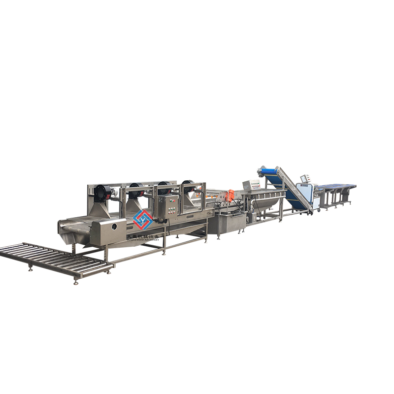 更新時間:2023-2-7 點擊:2459次蔬菜初加工生產(chǎn)線/流水線主要采用的是SUS304不銹鋼制成,符合國家食品的標準,生產(chǎn)線能夠?qū)崿F(xiàn)對物料的清洗、輸送、切割、洗滌、風干、分揀包裝等功能,目前已經(jīng)達到了高度的自動化程度,能夠替代很多繁忙的手工操作,大大的提高了生產(chǎn)效率。